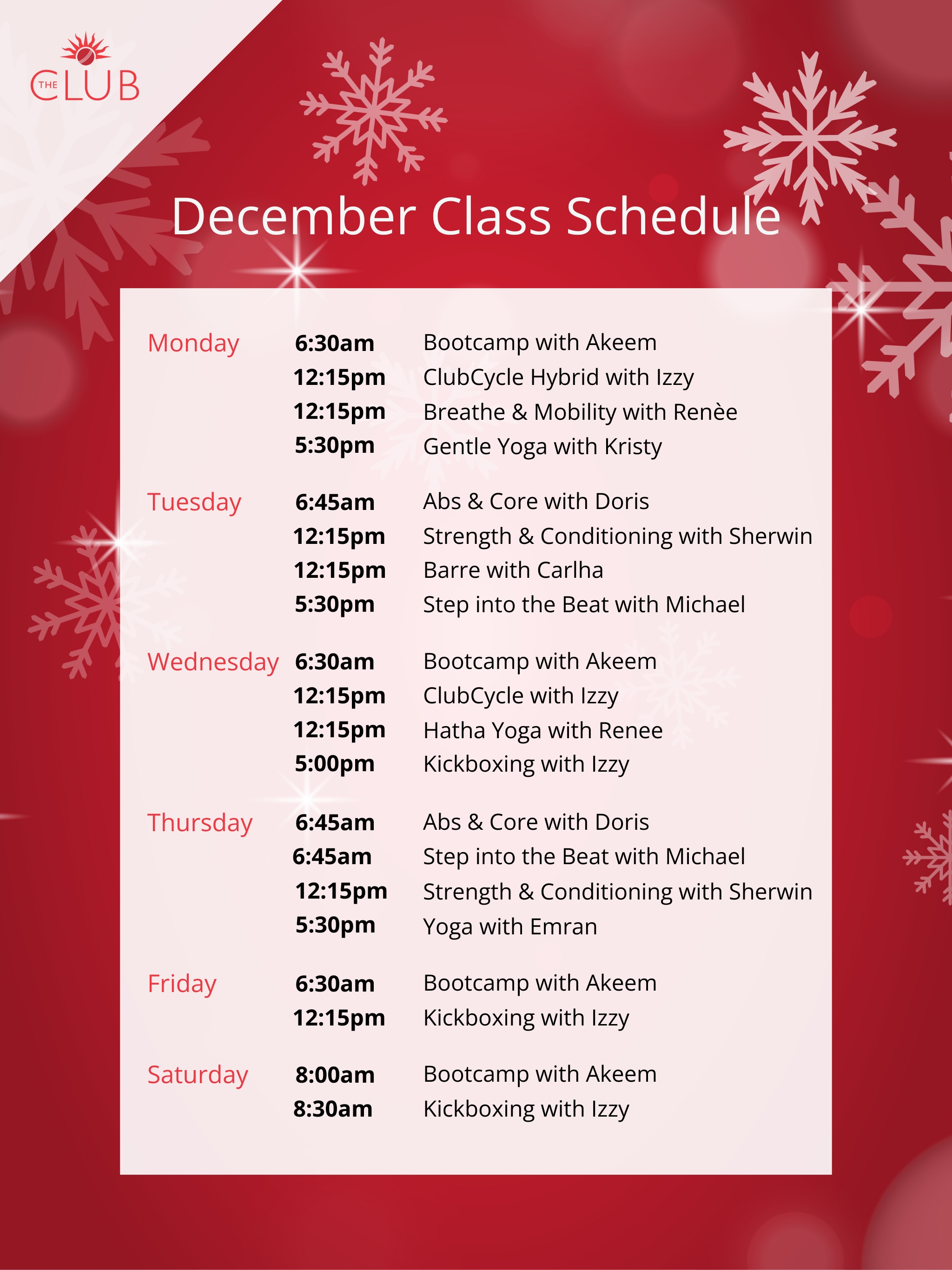 Holiday Hours: Please note that we are running limited 30-minute classes between December 22nd to Jan 5th. Click here to view the schedule.